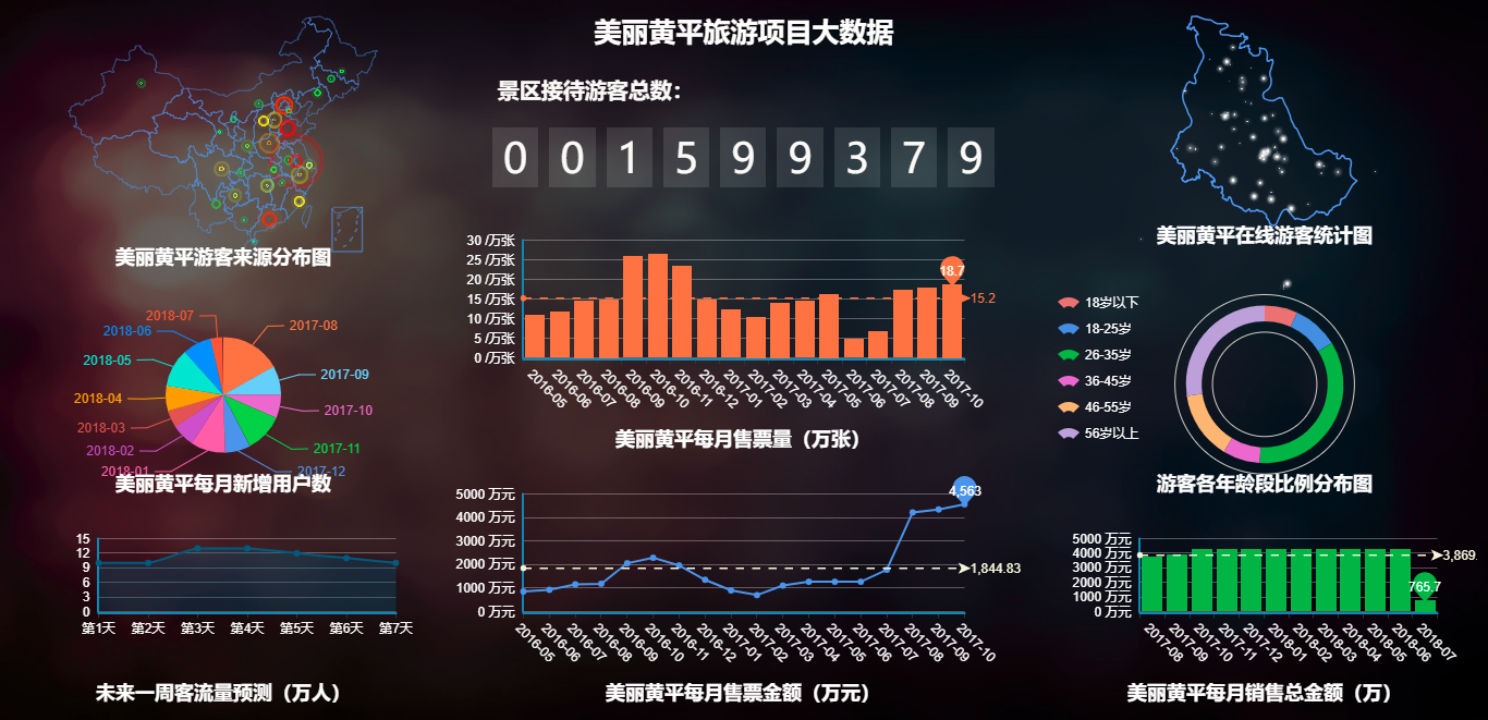路通視信始終立足于景區的整體設計與規劃,追求“智慧化”,不盲目推崇科技感,堅持以項目的落地可行為建設目標。曾與貴州省黃平縣展開合作,立足當地實踐,為其量身打造大數據平臺,涵蓋行、食、住、游、娛、購六大方面,滿足了相關政府部門推動旅游產業和旅游信息化的行政辦公需求。