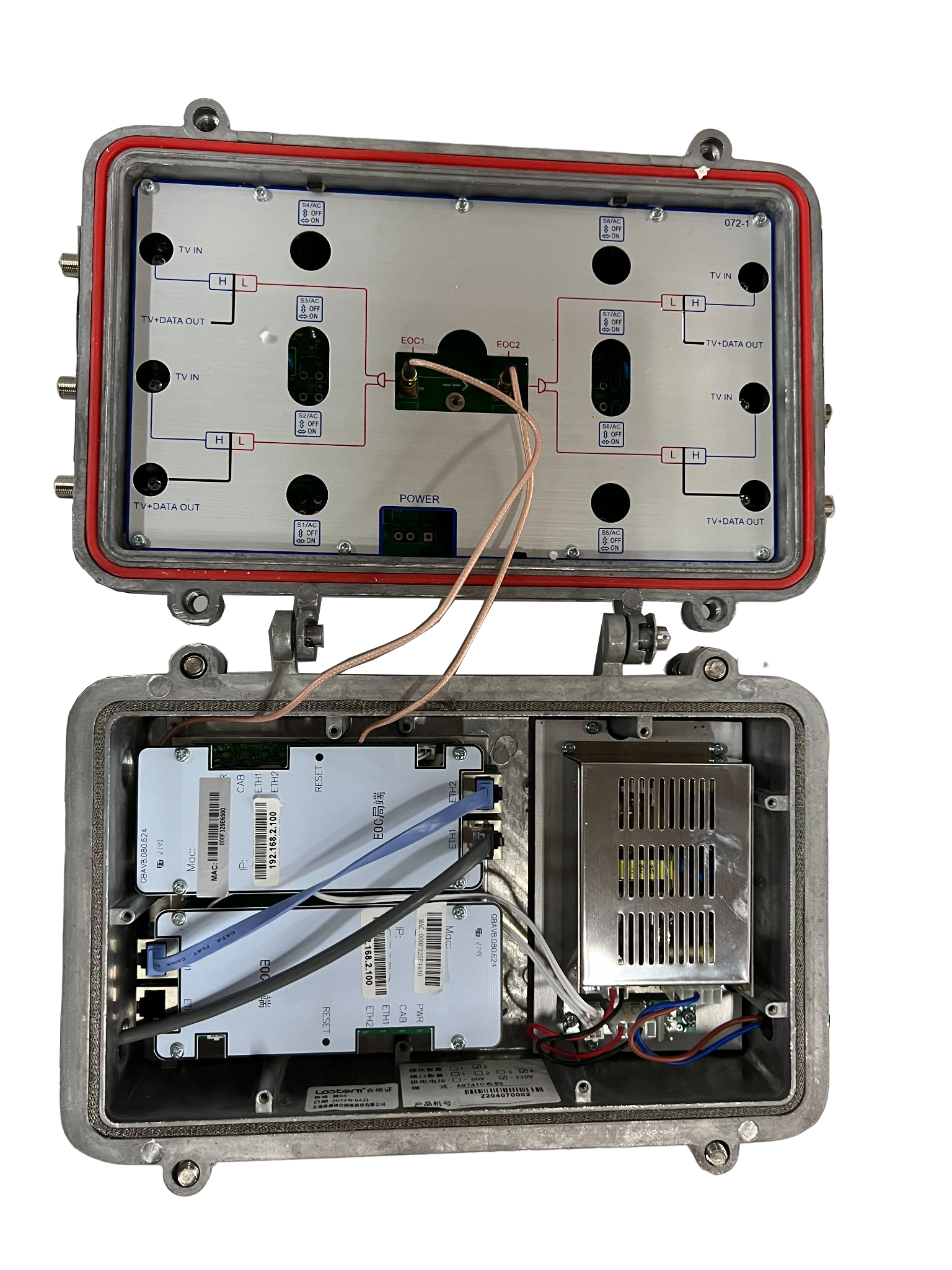 Overview        GDCBM710 series outdoor EOC master equipment can mix IP data signals and CATV signal output to the cable distribution network to achieve the transmission of IP data and television program on cable.It is located on the top of the EOC network, can connect as many as 253 CNU terminal equipment, it can also be installed in the output cable line of the HFC network optical node or building distribution network input line, to provide users voice, video, data and other business.